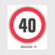 Custom 40 kmh or mph Speed Limit vinyl stickers. Round warning sign with custom number.