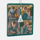 Create your own photo collage with 4 images in a square grid on a teal background. A white Christmas tree silhouette overlaps the corners of the photos in the centre and features your monogram in a green font. Add your initial and photographs in the sidebar to personalise it. Makes a great custom Christmas gift.