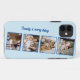 This romantic, cool, and modern case is perfect for anyone who wishes to carry their loved one with them. It features four customisable family photographs and pictures. It also displays a place for a monogram text beside photos on, blue background. Feel free to use this template to add photos of any kind. You can use your creativity here.