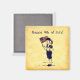 A custom magnet with retro letters reading Happy 4th of July and a vintage drawing of a patriotic boy holding red holiday fireworks and an old US flag on a faux parchment background.