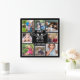 Custom 8 Photo Collage Family Monogram Black Square Wall Clock