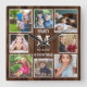 Custom 8 Photo Collage Family Monogram Brown Wood Square Wall Clock