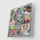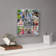 Custom 8 Photo Collage Family Monogram Grey Wood Square Wall Clock