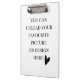 I love this clipboard and get many compliments on it. It's heavy duty and makes me happy looking at the vacation pictures! It goes to the gym with me, holding my workouts. Pictures are excellent and site was easy to use.