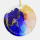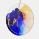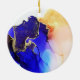 Delight your wedding or event guests with a beautiful piece of abstract art. Easily customise a keepsake ornament with names and anniversary date. Alcohol ink art on an ornament. Original abstract by international artist Pauline Benjes. Custom Abstract Blue Orange Gold Wedding Favour Ceramic Ornament.