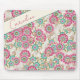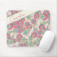 Cute colourful mouse pad with contemporary pink, aqua blue, turquoise green, taupe beige and green coloured Japanese style flower pattern. With room to personalise or customise with a name, monogram or initials of your choice.