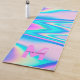 Easily personalise this Colourful purple Abstract Holographic Iridescent Yoga mat with your initial/monogram and your custom name, featuring a y2k pink, purple and light blue unicorn aesthetic with bright neon colours and grunge and bold distressed bold graphic design details and fonts. Customise geometric design border decor colour and thickness, or leave this modern black. Perfect as unique gift idea for school, sport lovers, yoga and meditation lovers, summer vacations, namaste aesthetic gifts, 16th birthday, and any joyful, colourful occasion.