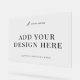 Upload and print your custom acrylic sign here - great for horizontal sign designs. Upload a PNG file with bleeds to the front of this 24x18" acrylic event sign and get your business grand opening sign, event welcome sign or any other type of event signage printed. To upload your files, click on 'Details' next to 'personalise this template' section; you may upload your files directly or use the 'design tool' to make further edits.