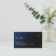 Personalize this stylish blue gradient business card template with your custom text and logo. All the modern clear white script on the front and deep blue script on the back is editable. This minimalist professional business card template will give your clients a great impression. Share your name, profession, address, email, website and more with this calling card. The dark blue and black card would be perfect for a cyber security specialist, financial advisor, IT consultant, property manager, lawyer or doctor.