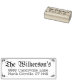 This custom address stamp features a regal and elegant design. A sample family name printed in an elegant, royal style font, followed by the family's home address. The stamp can be personalised to include your own information.