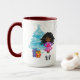 This adorable Irish Dance themed holiday mug features a cute African American Irish dancer in a pink and purple solo dress dancing in a winter wonderland complete with snow, a Christmas tree and gifts.  Personalise with a name! Some graphics by MUJKA.