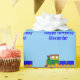A train is going down the tracks above your personalised message (shown: Happy Birthday Alexander). Change the train's number to the child's age (shown: 3). The background is sky blue.