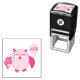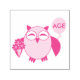 This awesome self inking stamp features a cute brown owl with big sleepy eyes. The owl is holding a pretty pale pink balloon and a bouquet of bright pink flowers wrapped in a pale pink cone.