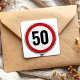 Red round traffic speed sign with a modern graphic style. Customise your age for the perfect cars and drivers themed birthday party.