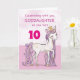 A sweet pink pony just like your goddaughter is prancing with the number ten! Gold looking details are woven in her mane and tail. Perfect card to wish your goddaughter her birthday!
