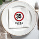 Customise your age for the perfect cars and drivers themed birthday party. Red round traffic speed sign with a modern graphic style.