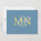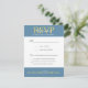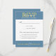 A custom modern wedding RSVP card featuring big initials of the couple with an ampersand in air force colour background