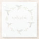 Pretty custom coaster featuring a hand-painted watercolor wreath of botanical branches and Allen's Hummingbirds on a white background. The font style, font size and colour can be changed by clicking on "Edit design".