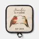 Cute custom pot holder featuring a pair of Allen's hummingbirds. The font style and size can be changed by clicking on "edit using design".