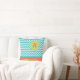 Grinning alligator with a balloon tied to his tail is fun green colour against a turquoise and white chevron background. Accented with a warm red-orange, this pillow is fun to personalise. Add an initial on the balloon on the front side and a name on the stripe on back.