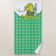 A Fun Cartoon Alligator Beach Towel In A Green Plaid You Can Customise