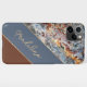 Custom Amber Brown Dark Blue Chic Marble Pattern iPhone Case