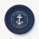 Custom Anchor Boat Name Navy Blue Nautical Paper Plate