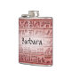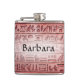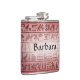 A Custom Ancient Egyptian Hieroglyphs Red Flask with rows of ancient hieroglyphs engraved on stone. Personalise it with your name! Edit the text "Barbara" on the right.