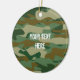 Custom army camo photo Christmas tree ornament for friends, family, co worker, employees, engaged couple, newlyweds, husband and wife, bride and groom, mum, sister, girlfriend, brother, uncle, dad etc. Hunter green camouflage pattern colours with vintage typography template for name and seasons greetings. Cute personalised winter Holiday decoration gift idea for him and her. Double sided xmas accessories with your own picture or portrait. Upload your image to replace the placeholder. Change quantity to get the cheap bulk price. Includes sparkly gold string.
