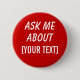 Ask Me About - customise with your own text promotional button or badge. Add your product or service name. Change font or background colour if you like. Answer questions or increase sales with a conversation starter button. Good for trade show or other event.
