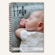 Journal and capture baby's first year with his personalised notebook. Customise the template to include a photo on the font and the back, have baby's name and a special message from you on the back. Modern typography script for the word "hello".