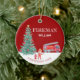 A cute red firetruck Christmas keepsake is the perfect christmas decoration theme for a firefighter Christmas gift. It features your child's custom name, custom photo and the christmas year. You can edit all of the text. This one has a christmas theme with a traditional red and white background a a gorgeous decorated christmas tree.