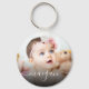 Create your own personalised round keychain with your custom modern handwritten script name and favourite baby photo.