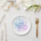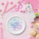 Custom baby shower plates with soap bubbles design. Elegant template with name of child and date. Script typography. Suitable for newborn boy or girl. Personalise with your own text. Cute party supplies for celebrations with friends and family.