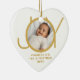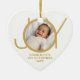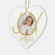Custom Baby's First Christmas Photo Gold White Ceramic Tree Decoration