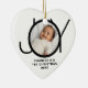 This stylish heart-shaped Baby's First Christmas Photo Ornament is decorated with the word JOY in black on a white background.
