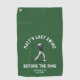 Tee off in style with this Bachelor Party "Last Swing Before the Ring" golf towel! A cool, modern design perfect for the groom’s crew on the course. Customise for a personal touch and a legendary golf trip!
