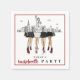 Celebrate in true New York City style with this chic bachelorette cocktail napkin featuring a minimalist line-art NYC skyline above four stylish ladies ready to party—three in little black dresses and heels, and the bride-to-be standing out in white.