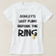 Last Fling Before the Ring! Fun Bachelorette party t-shirts for the bride's last night out! Personalise with the Bride's name in the space provided.