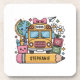 Hop on the creativity bus with this fun cartoon-style school bus coaster featuring cheerful school supplies, colourful alphabet letters, and cute flowers! Perfect for teachers, students, and school staff, this playful back-to-school illustration is ideal for customising with your name.