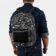 This custom backpack is shown in a charcoal multi colour camo print with two tone black colour accent, buy as shown or add to it.