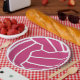 Custom colour sporty ball design netball themed party paper plates. Netball word art design printed party supplies.