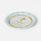 Custom Baptism in Blue, White Damask and Gold Paper Plate