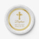 Custom Baptism in Pretty White Damask and Gold Paper Plate
