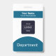 Create a fully customised business logo name badge with barcode option in a professional navy blue design. Personalise with employee name, title, company logo, and optional scan barcode for added functionality. Easy to customise fonts and layout. Ideal for employee identification, security, and events. Available with lanyard, clip, or retractable reel.