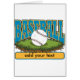 A Baseball sits ready on the grass with large blue BASEBALL text outlined in yellow! Add your custom text below this Baseball design in the space provided. Perfect for any Baseball player or Baseball fan, add names, school names or sports message! Customisable Baseball shirts and Baseball gifts!