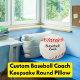 Custom Baseball Coach Keepsake Pillow: A fun and customisable round throw pillow for avid baseball players, coaches and fans! You can change the text to: name, team, school, etc.. - to personalise it for yourself and others.