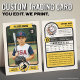 Step up to the plate with this custom vintage-style baseball trading card in black and gold. Personalise with your player’s photo, stats, and details to create a unique keepsake. Perfect for baseball fans, baseball players, little league players, coaches’ gifts, birthdays, and sports-themed parties. A fun way to celebrate the game and preserve memories in classic trading card style.