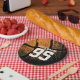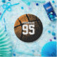 Custom basketball birthday party paper plates with jersey number. Cute party supplies for sports themed birthday party. Disposable fun dinner party supplies printed for kids birthday, team, sports club celebration etc. Strong quality suitable for sporty men, women and children (boys and girls). personalised text and customisable background colour. Add personalised name of teammates, school team name, funny quote, slogan or monogram.