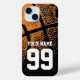 Custom basketball jersey number cool Case-Mate iPhone 15 Case. Sleek durable design with vintage orange ball print. Great gift for fans and players. Background colour can be changed.
